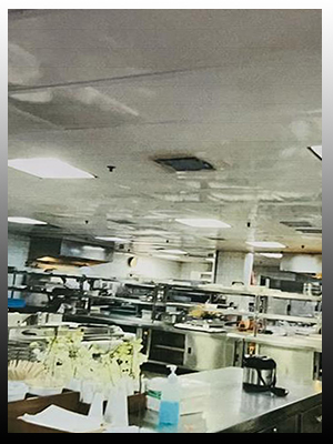 Providing, fixing of ceiling comprising of MS Trays, tee iron, ceiling in room service kitchen, coffee shop area, chinese kitchen and main kitchen and roof top kitchen (the ceiling of main kitchen, coffee shop, chinese kitchen is replaced with SS Trays during renovation).